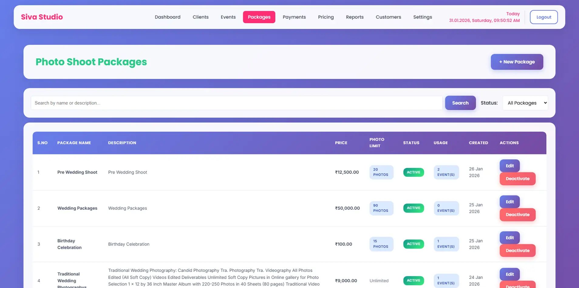We have proven experience in: Event Management (Mandapam/Banquet Halls), Photography Studios, Microfinance/NBFCs, Food & Bakery, E-commerce, Education, Healthcare, Real Estate, and Manufacturing. Each solution is customized for industry-specific workflows.